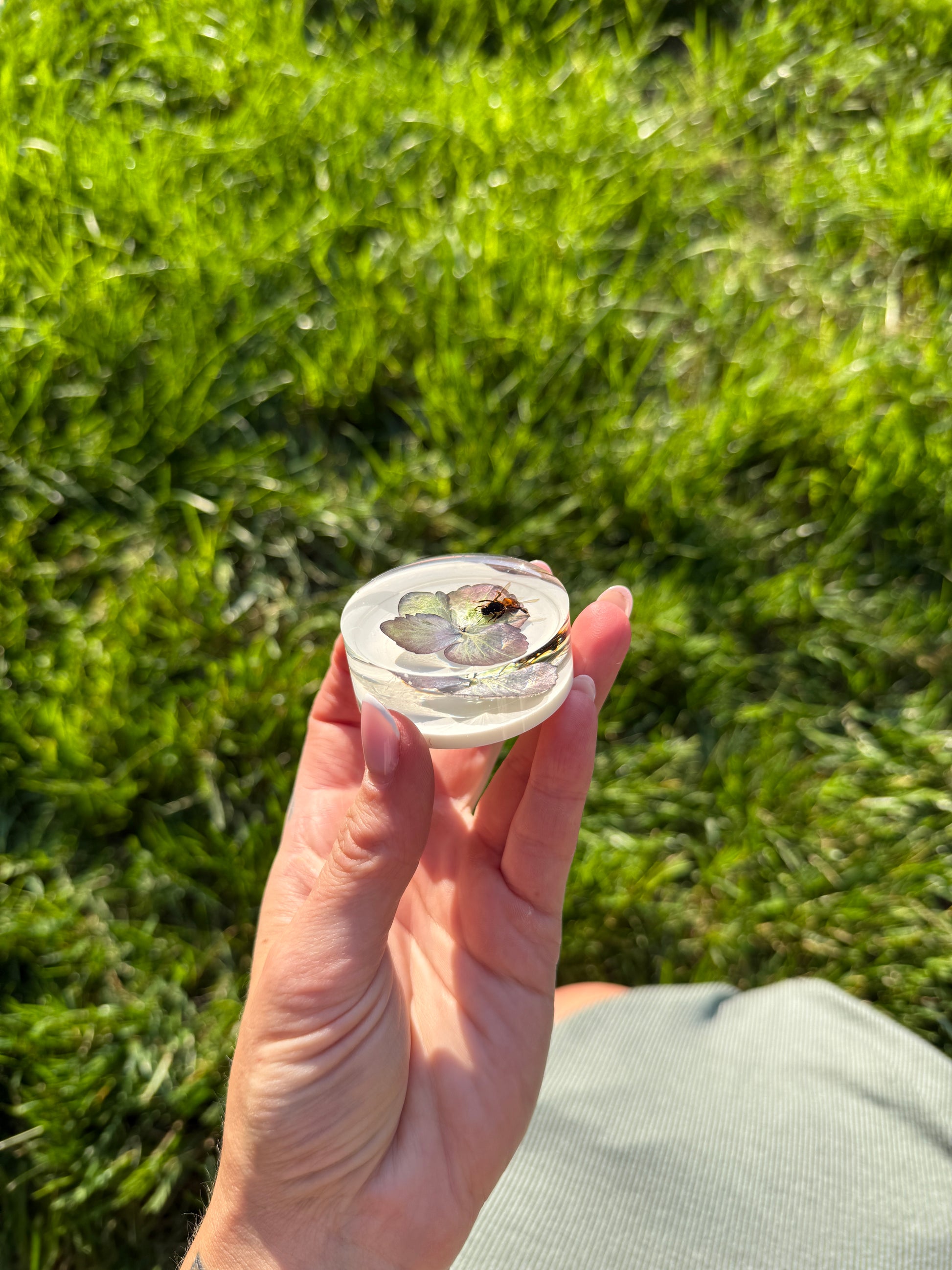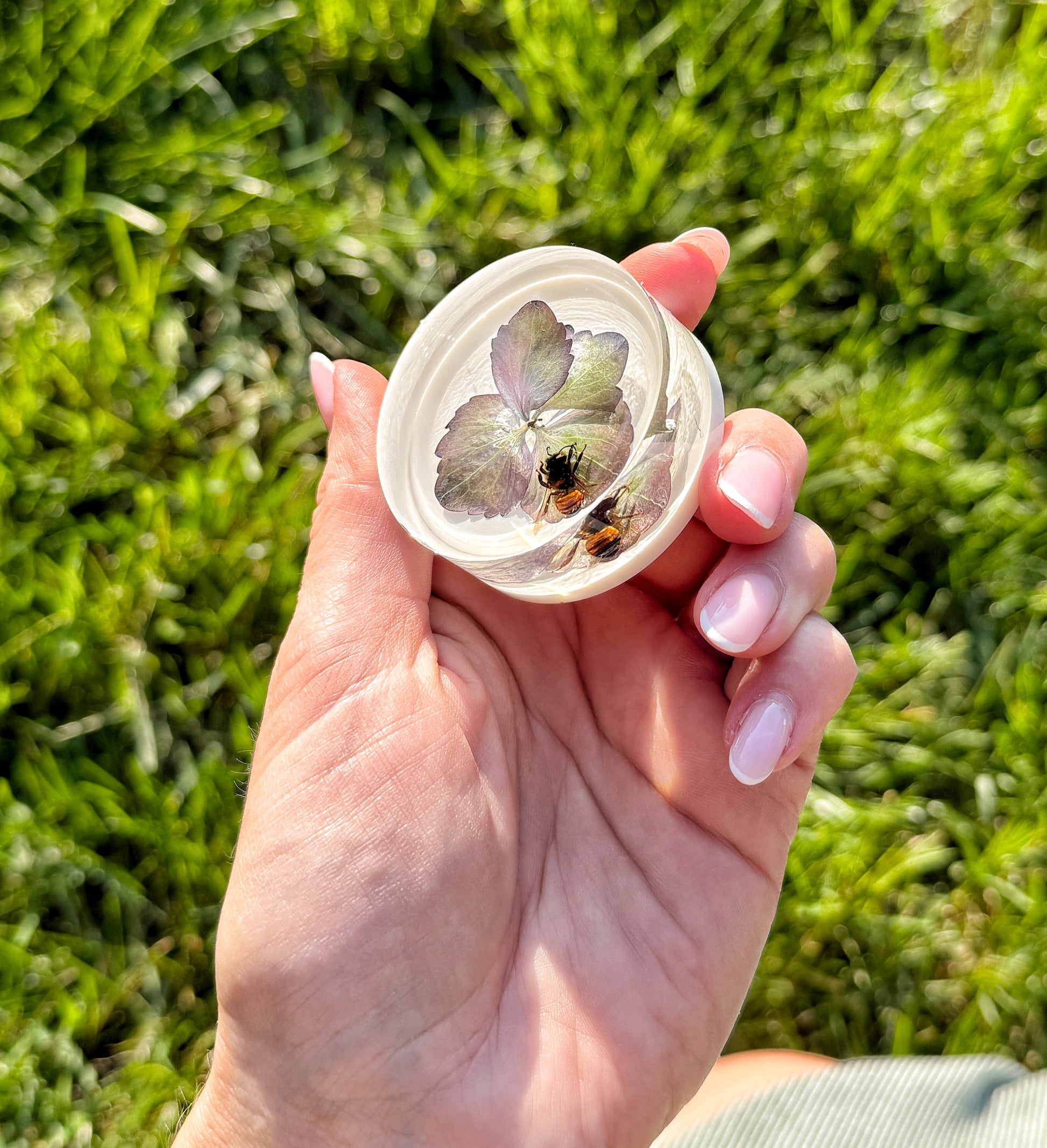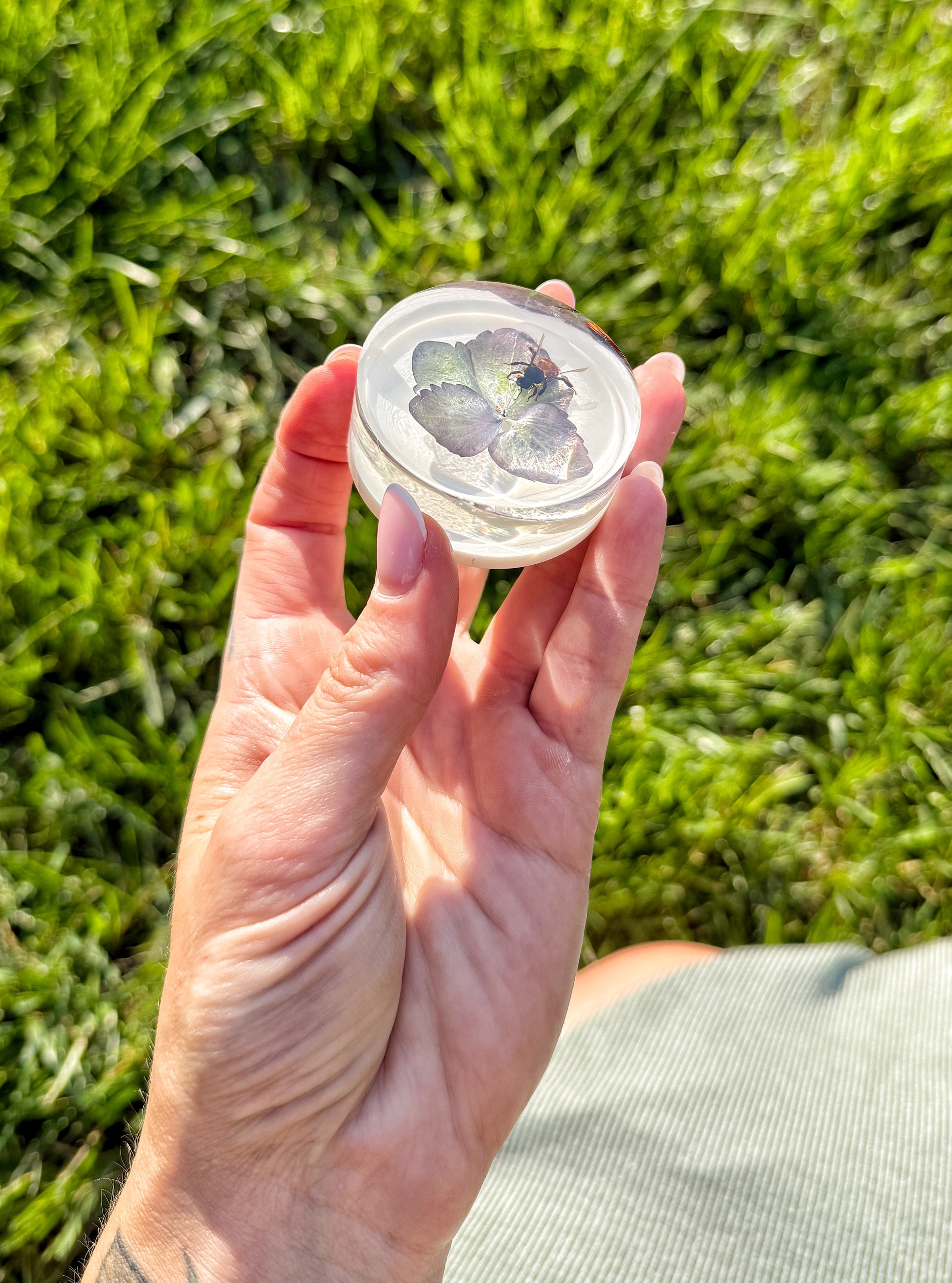 Nature, preserved. Each of these handcrafted resin magnets features real eclipse hydrangea petals and one or two honey bees, lovingly encased in crystal-clear resin. These bees came from a dear friend’s hive that was sadly lost — this collection gives them a beautiful second life.