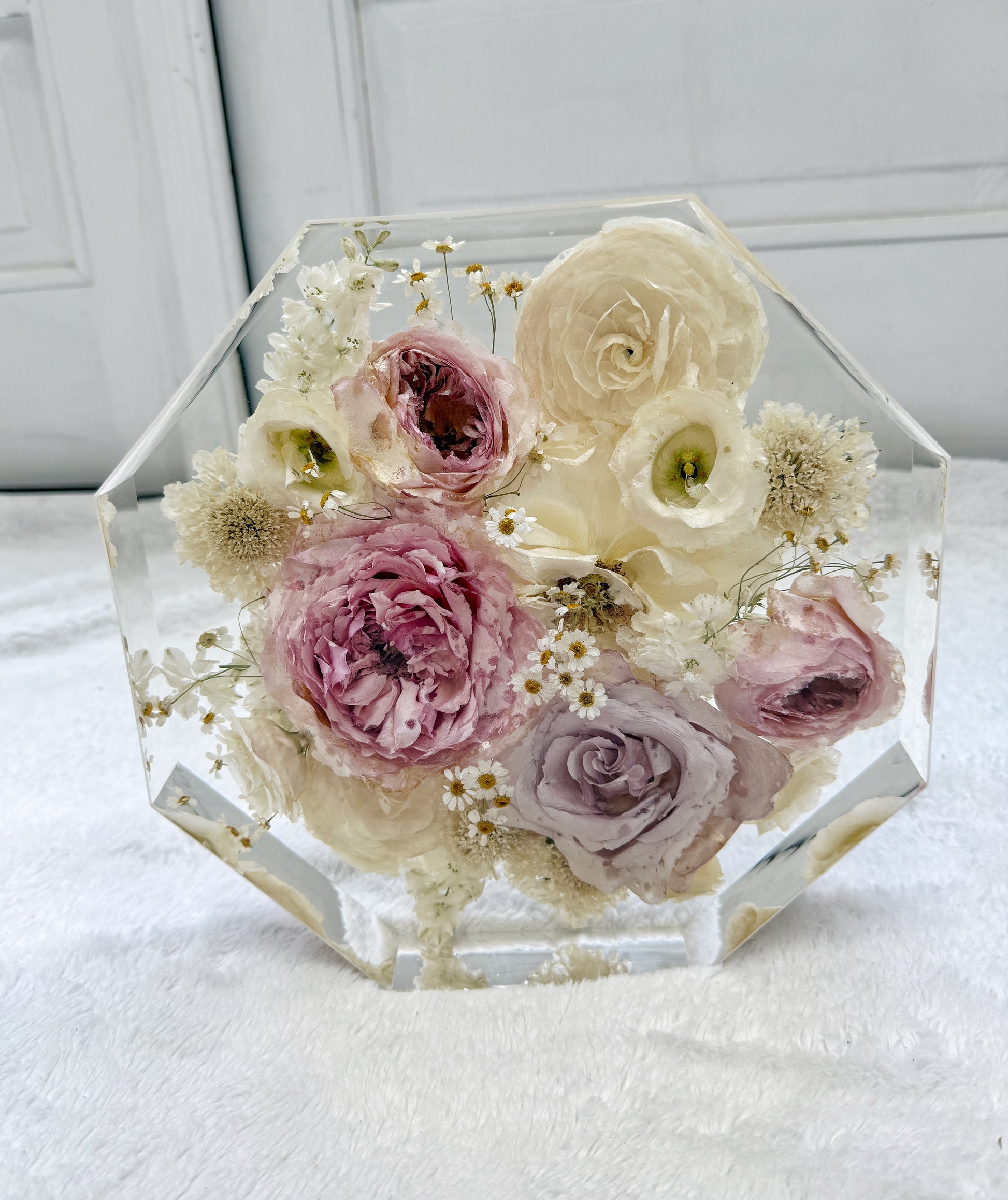 This octagon display piece is a modern and elegant way to preserve your cherished flowers, showcasing them in a timeless geometric design.