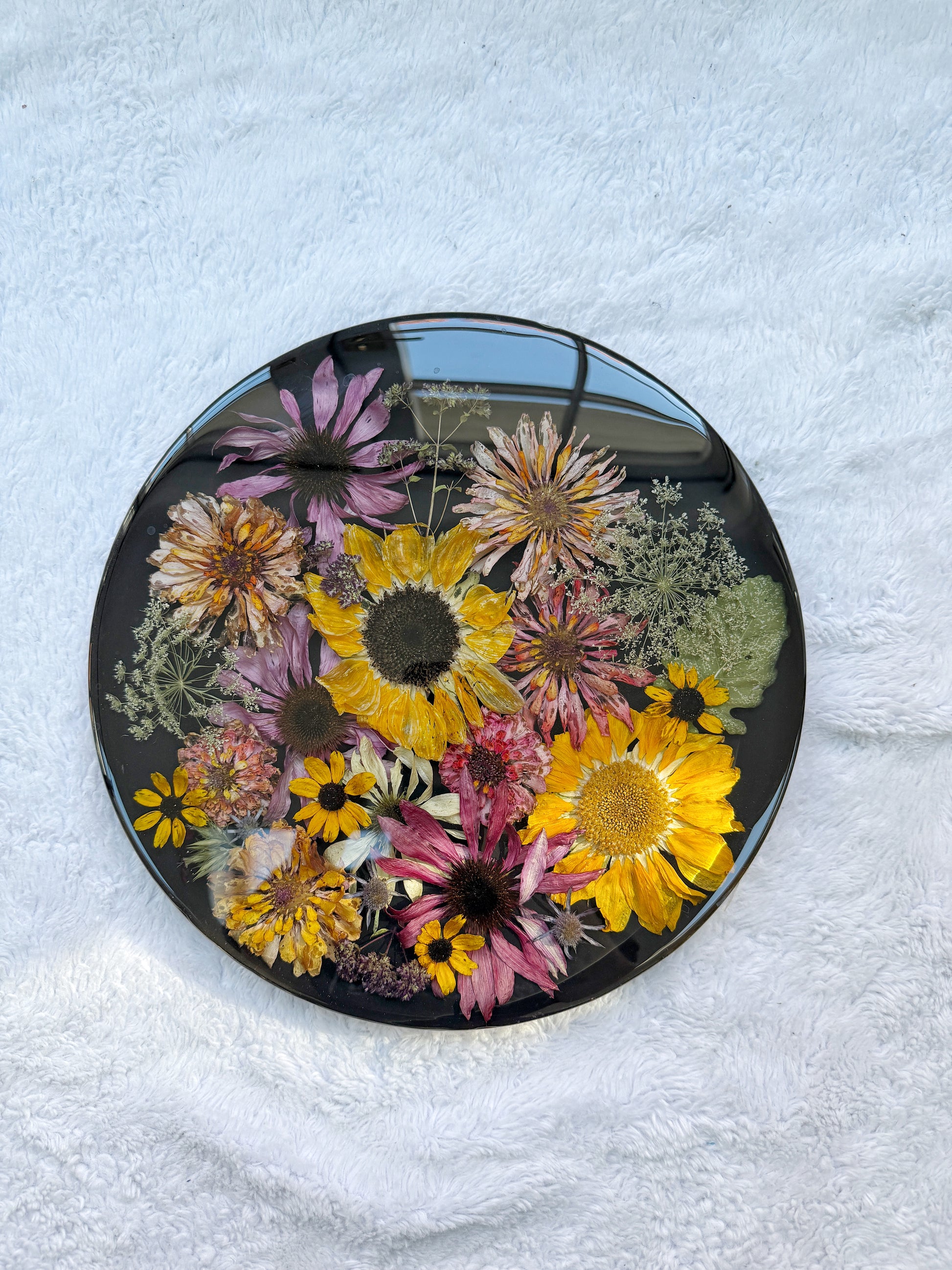 – Real flowers, preserved in resin