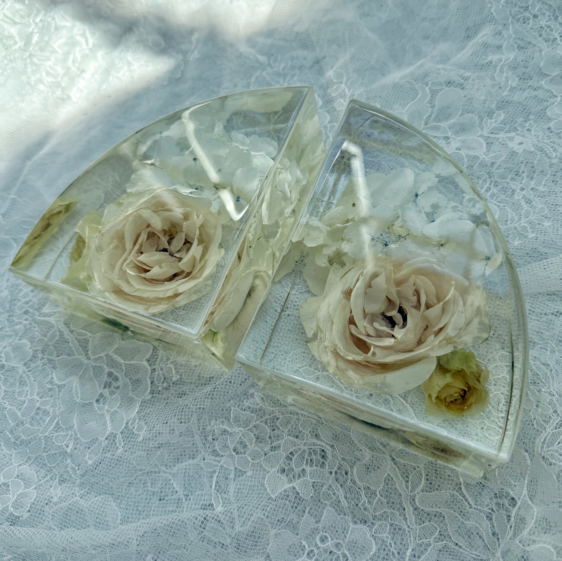 These floral preservation bookends combine beauty and functionality, transforming your flowers into a striking, practical décor piece for your home.
