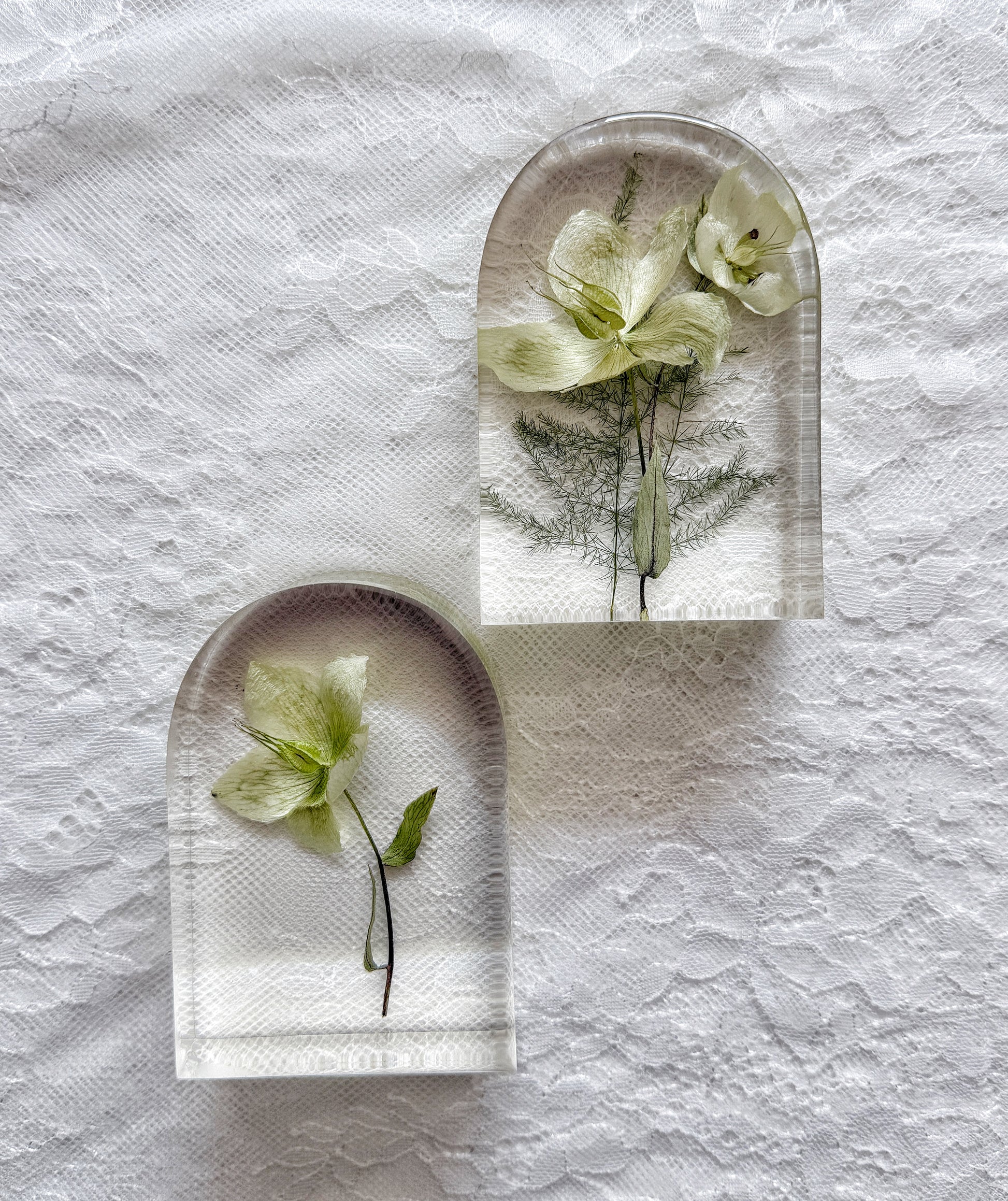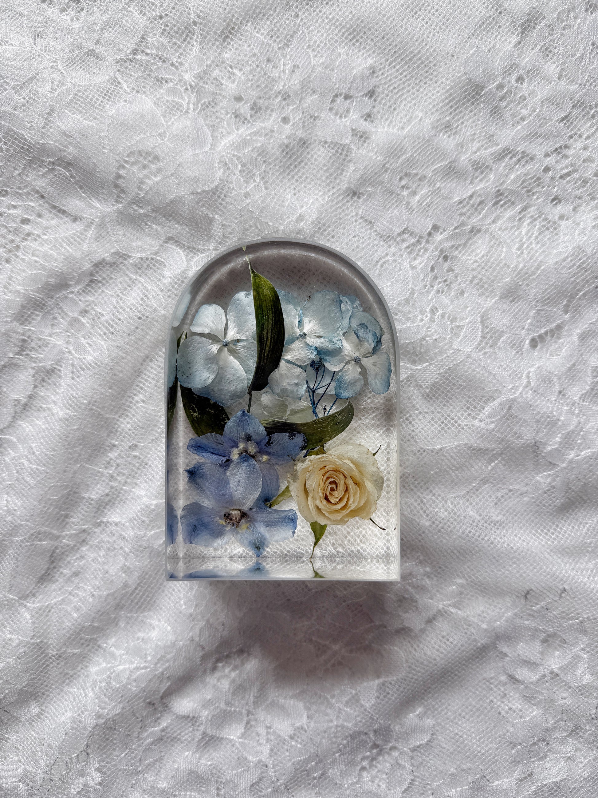 The Baby Arch is a petite and elegant floral preservation piece, perfect as an add-on to complement your larger preserved items. Its minimalist arch shape highlights the delicate beauty of your flowers in a timeless design.