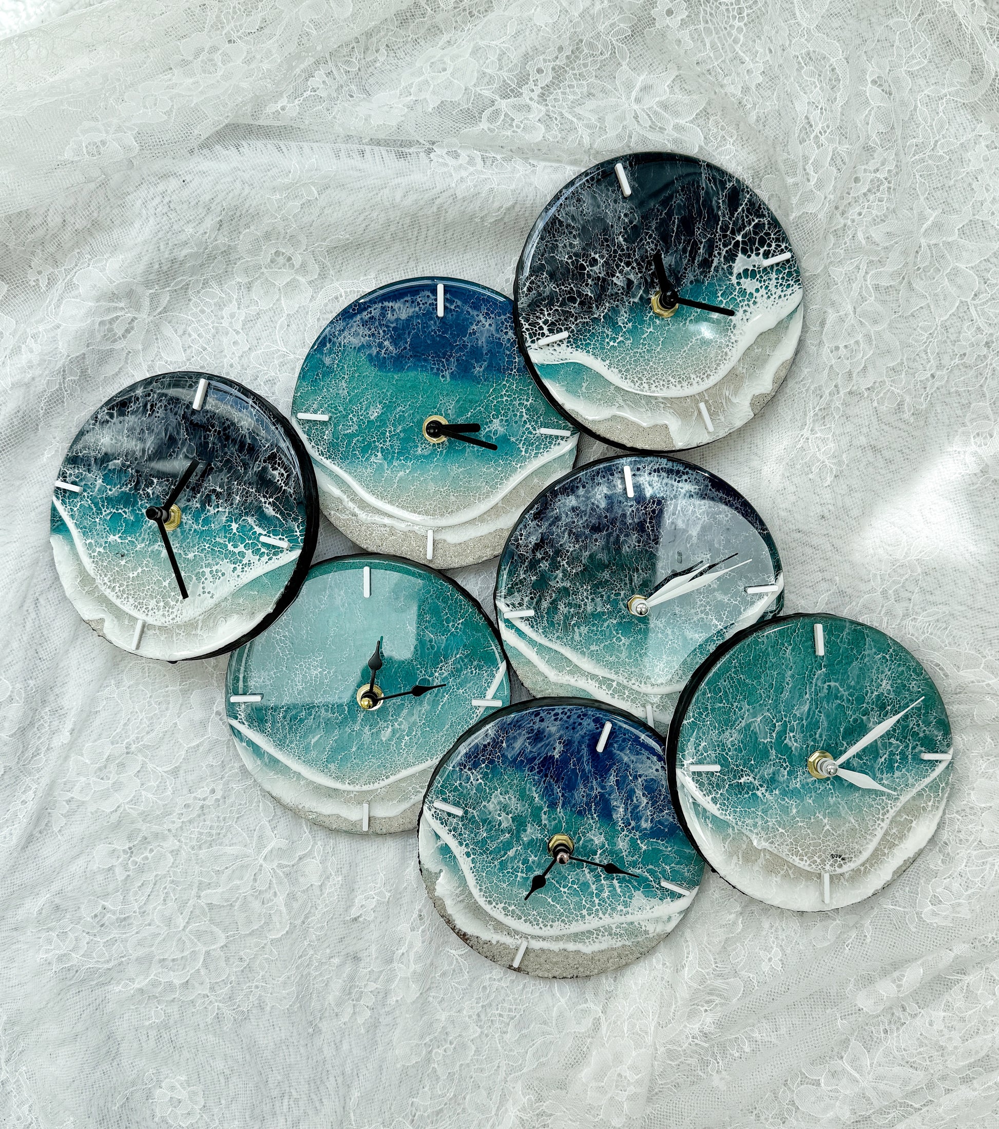 🖐 Each clock is handmade and uniquely layered — wave placement, sand patterns, and resin details will vary slightly from piece to piece, making every clock one of a kind.